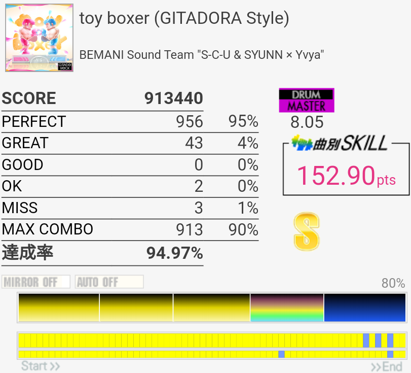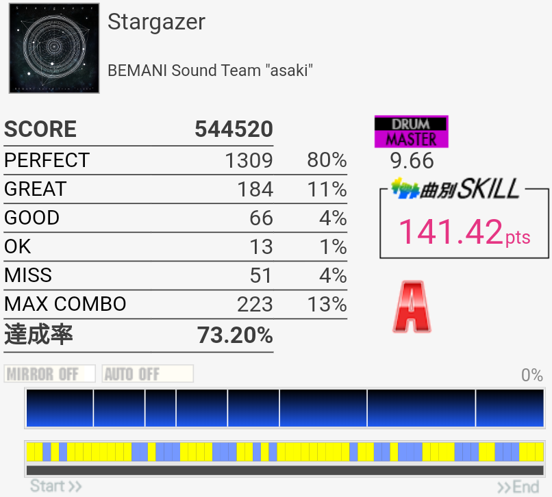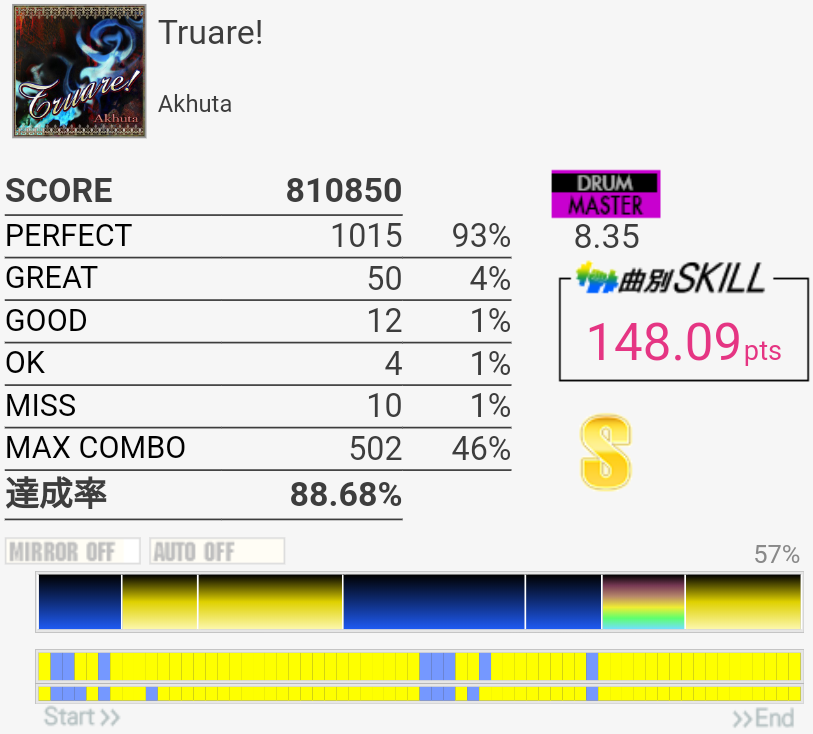 結局上から順番に全難易度一周して、それでも終わらなかったので+2回だったかな?BSC譜面あたりは完全に飽きてたので透過100%でやってた。タムが見えねえ。ムービーないからつまらんし……。