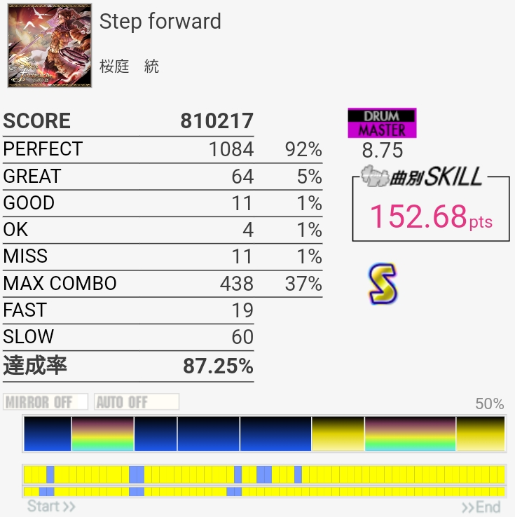 SS乗った!真ん中初めて繋がったからめっちゃ緊張した。最後の泉フィルは交互で叩けるのはわかるけど手が動かんよな。