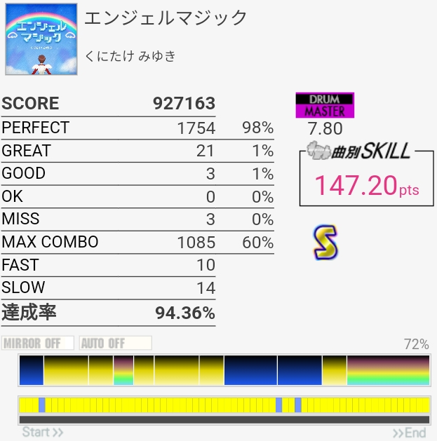 苦手だった後半のツーバス+CYはなんか上手かったけど前半のフレーズ切り替わり部分のSNがリズムわからんのよな。たぶん叩くのが速いのかな?