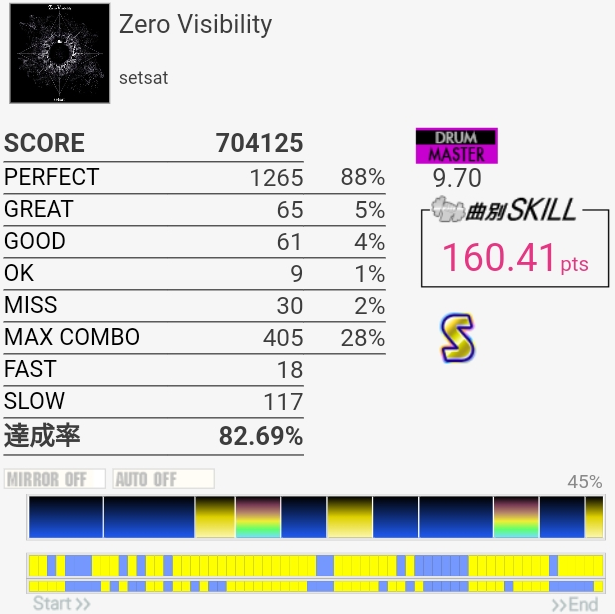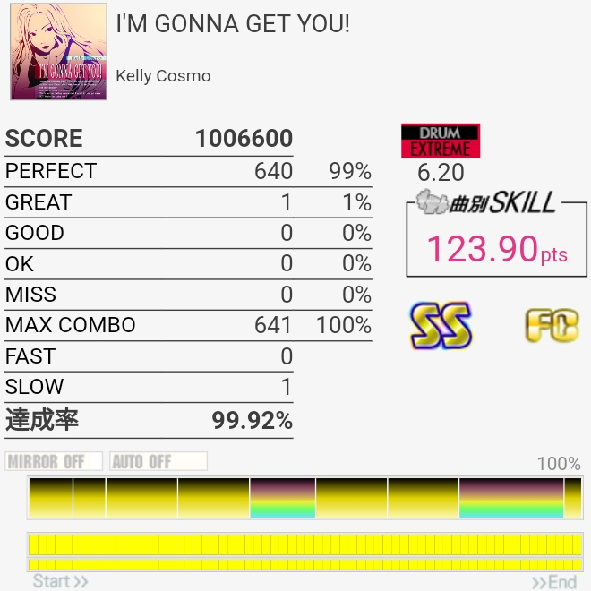 前半のシンバルとハイハット絡みが毎回パターン違って意味不明なのと後半のFTゴリ押し地帯が意味不明。FT地帯の方は叩けたら楽しそうではある……無駄な高速連打とかはないのでシンプルに手順を見切れるか覚えるかなんだけど見慣れない形すぎてムズい。曲についてはよくわかんないけど音がカッコいいと思った。