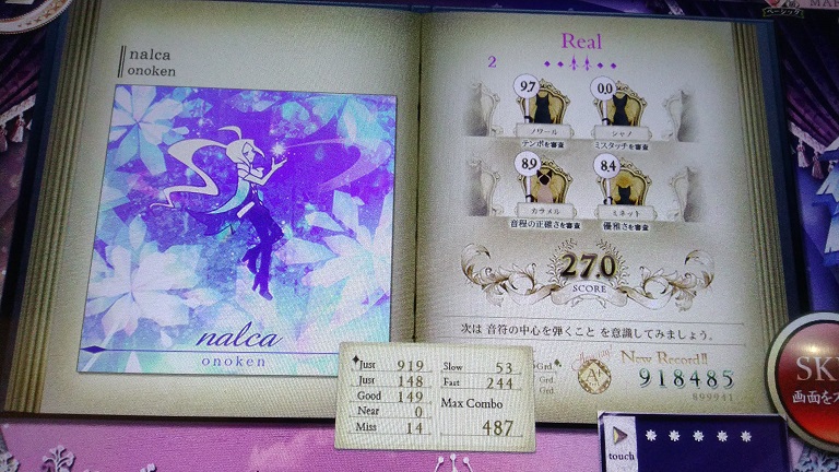 Expertは16分3個がちょいちょい出てきて意外とこぼす。5個階段は準備できる感じの場所にあるので練習にピッタリだな。Realは16分がマシマシになってSは取れるけど対象には入らない感じの譜面。