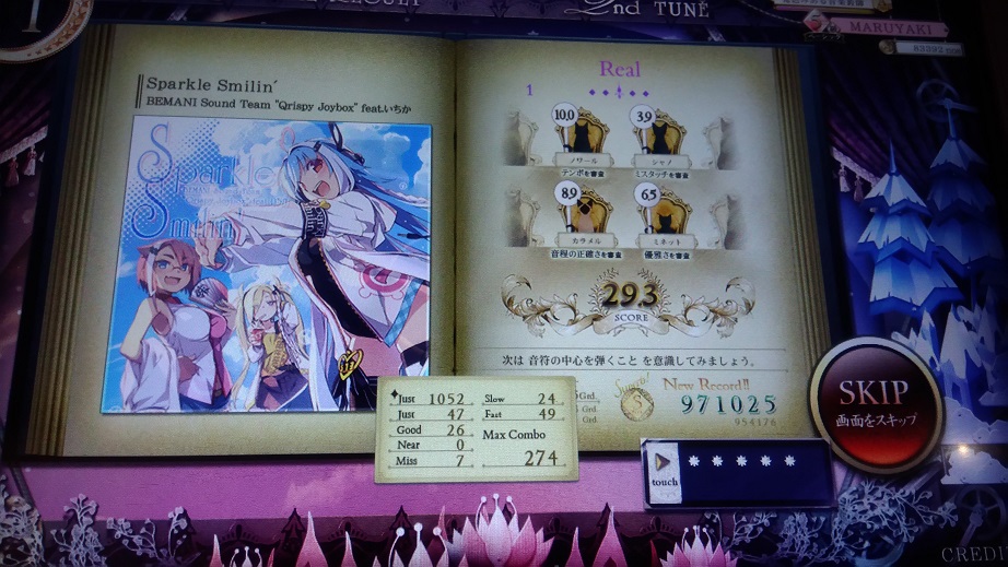 ExpertはLife is beautifulのAメロが延々続く感じで指が動かないとキツい。最初指押しでやろうとしたらS取れなかったのでミスタッチ上等のやり方で。Realは音聴いた時点でそういう感じだろうなとは思ってたけど、まあA+取れただけでいいんじゃない。