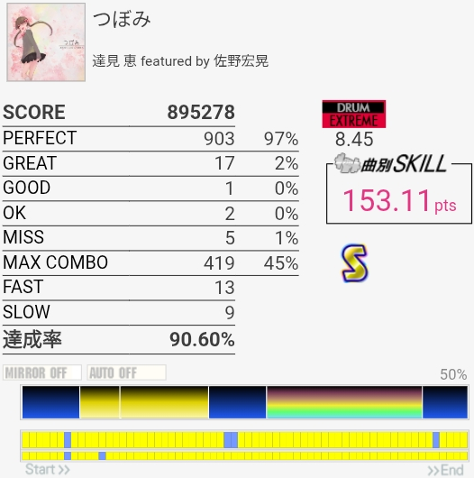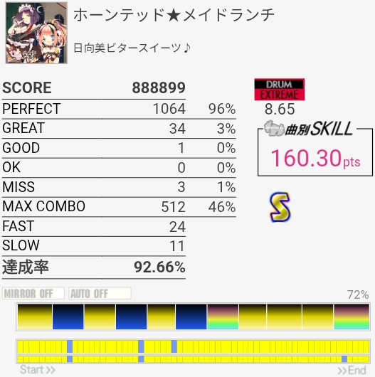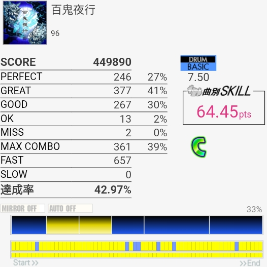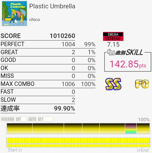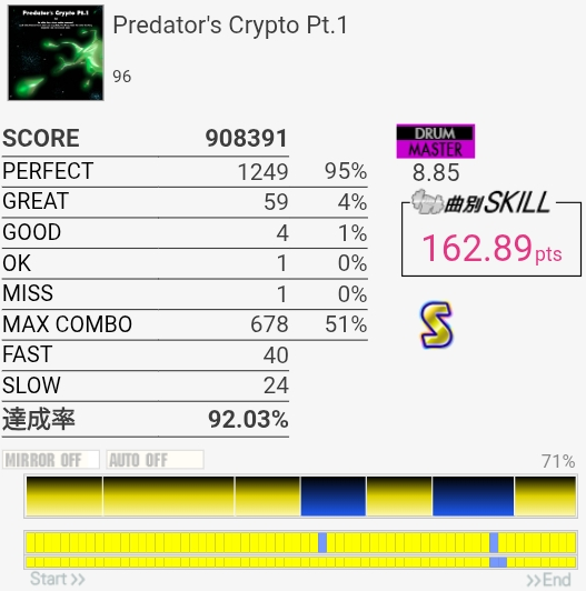 4-4-4-4のところのBPが全部GREATになった。判定どうこうよりペダルと椅子がダメな問題の方が大きいと思う。
