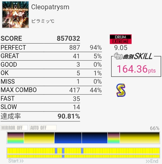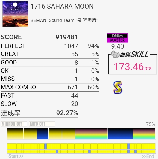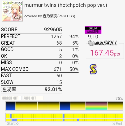初見フルコンできた。PON曲らしいタム回しの入れ方だけどPONだったらもっと変な形にする気がするから編曲別の人かもしれん。