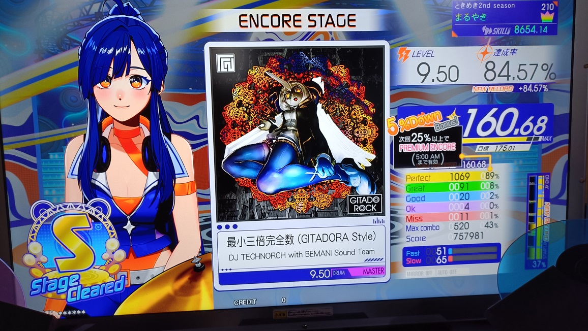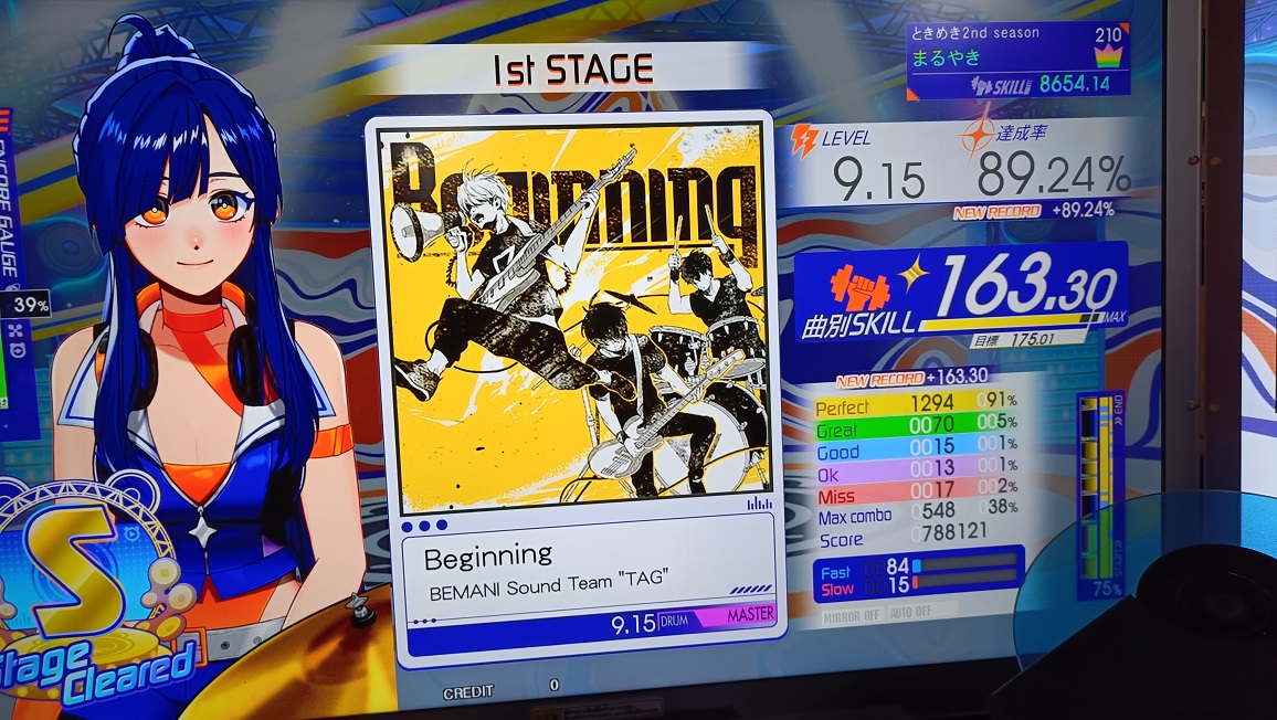 S取得。全く追い付かないけど前より喰らいつけた感じ。イントロのタムが一切見えないのが情けない。
