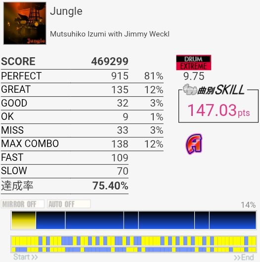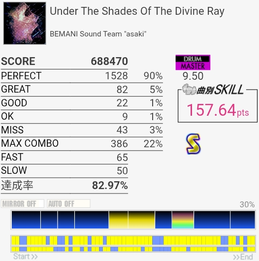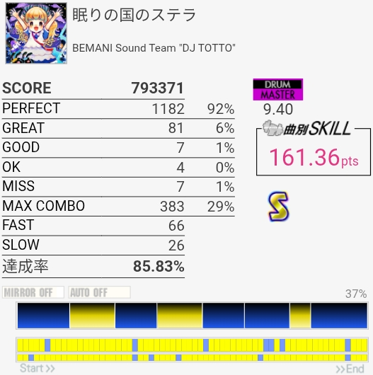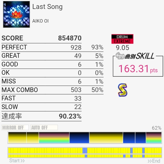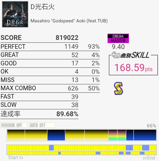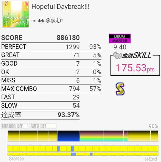 B判定→A判定。これ最初のフレーズちゃんと叩けてればS取れたのでは?