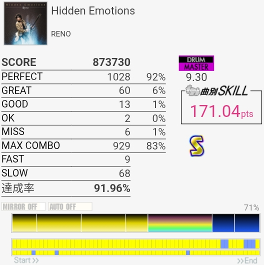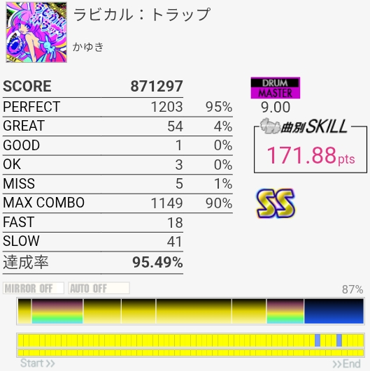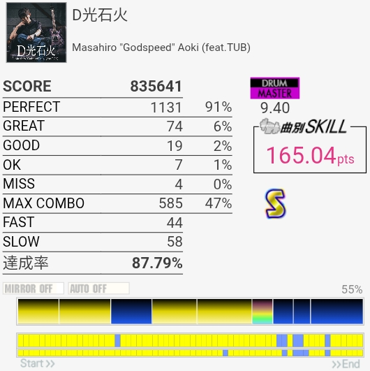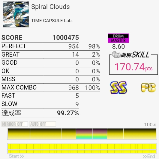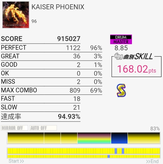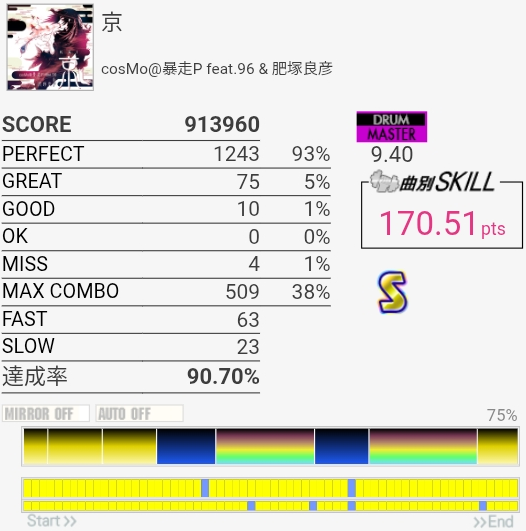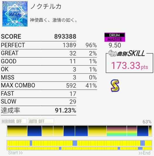 変なGREATがポロポロ出てパフェ率足りなかった。やっぱ5フレーズ目苦手……。