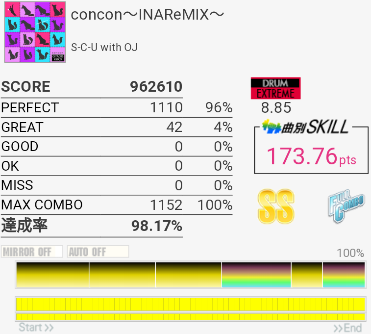 フルコン対象トップ。刻みでGREATが出まくったけれど、GOODなかったからまあいいか。