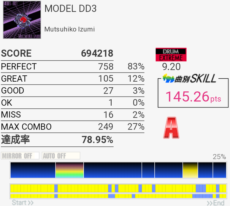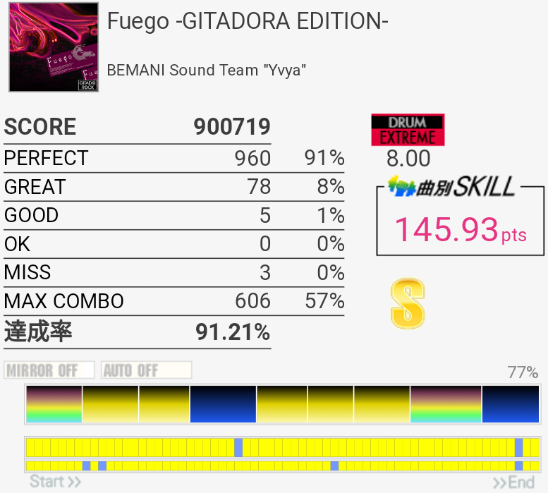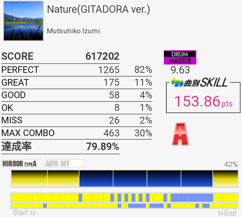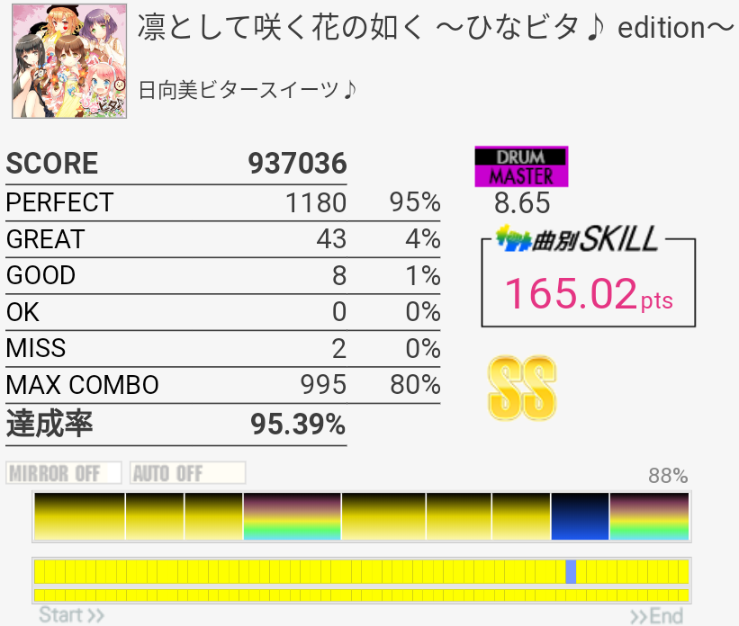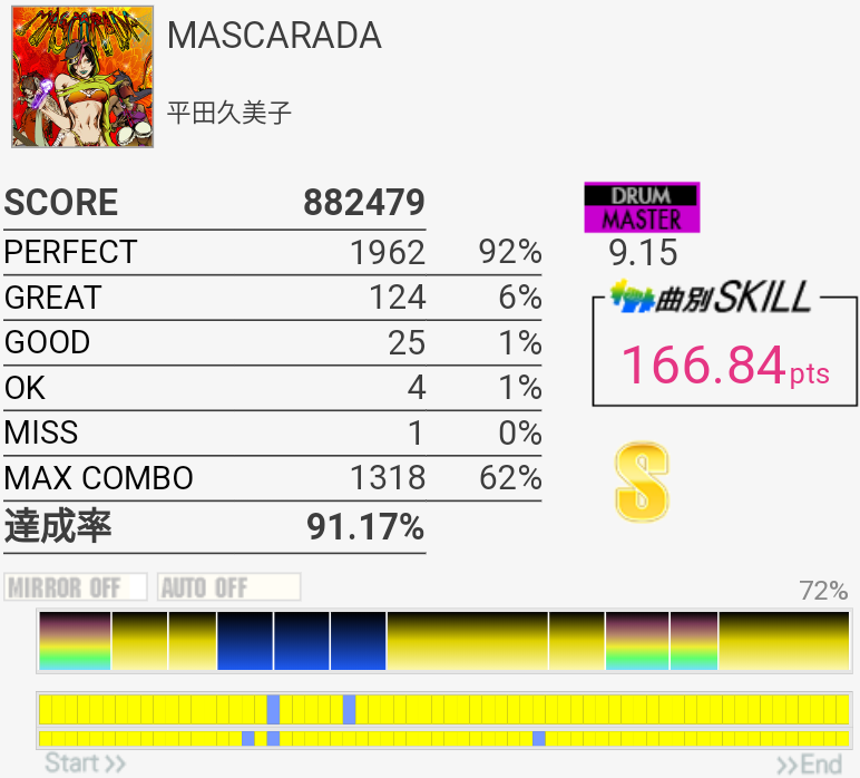 あとひとつフレーズを取れていればS出たのに……フレーズ終わりのLT→HTの叩き方を身につけなきゃな。