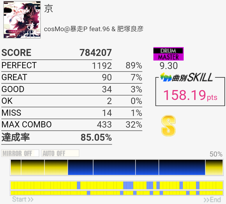 さすがにこれはフルコンしたかった。オープンとクロスで迷ったら負け。