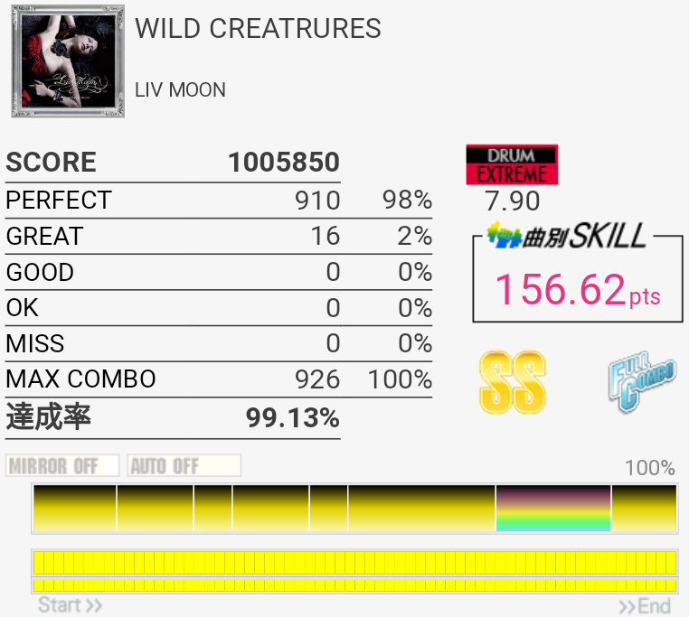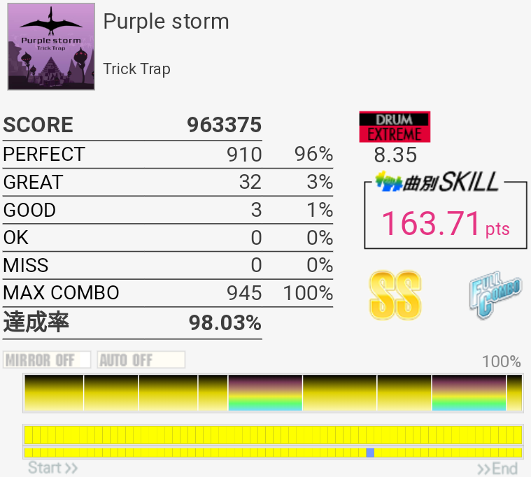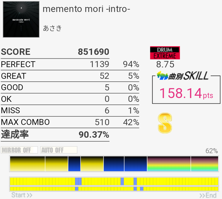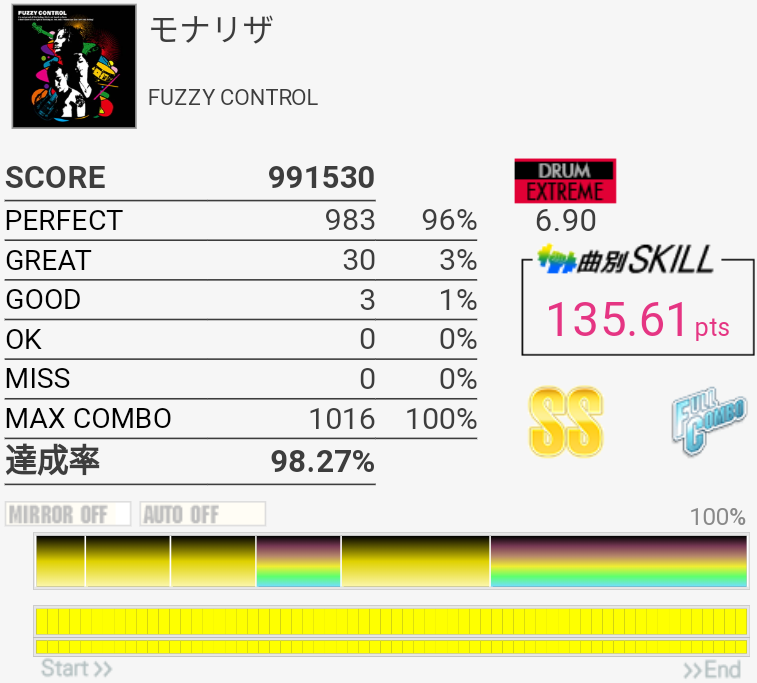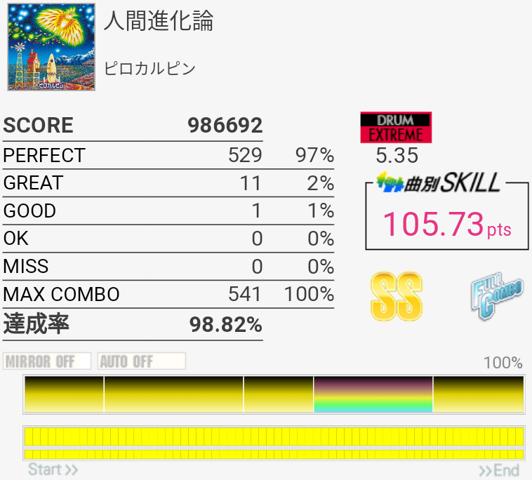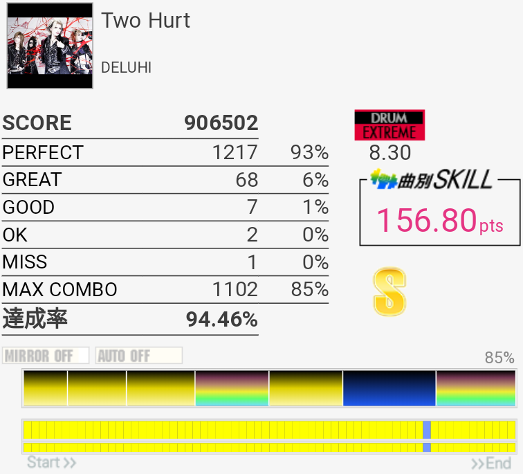 フルコン。クロスで叩いてどこかしらミスる譜面だったのでうれしい。