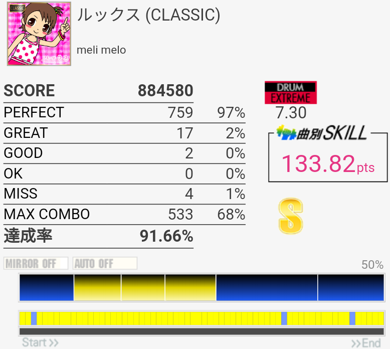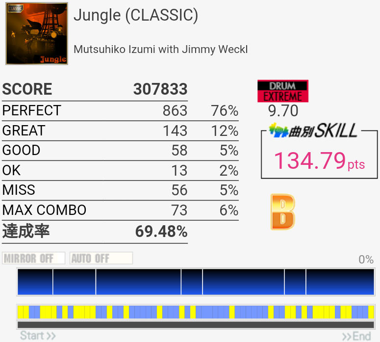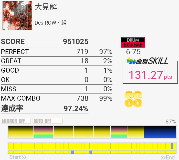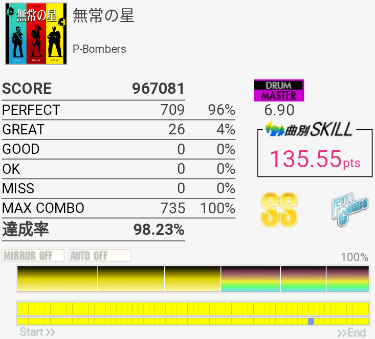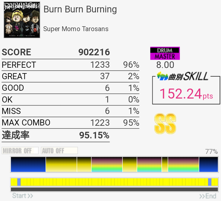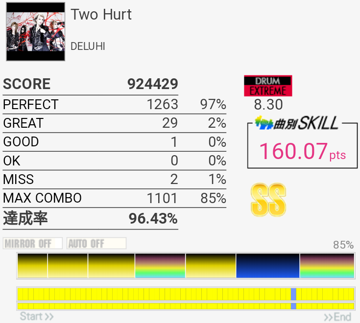 SS取得。Bメロ最初のHH×3をいつも忘れて切ってた。