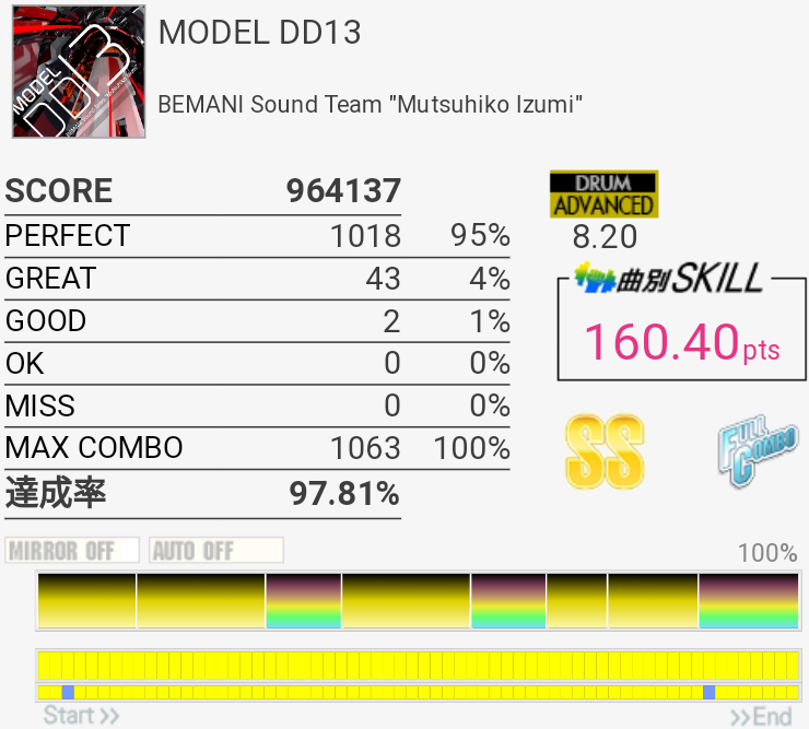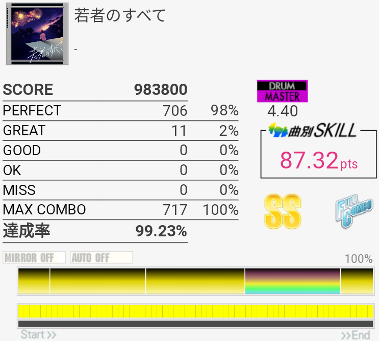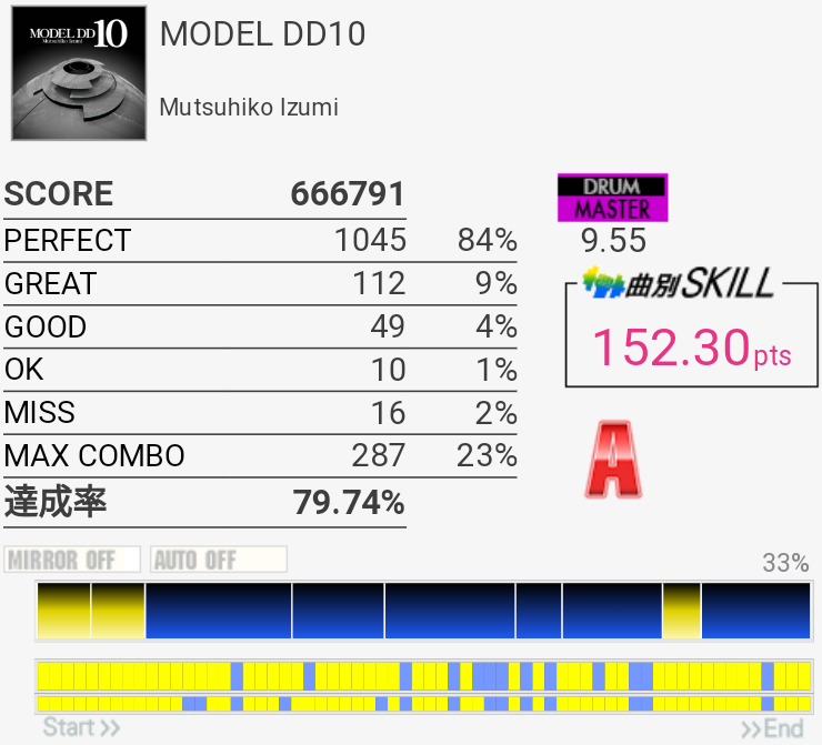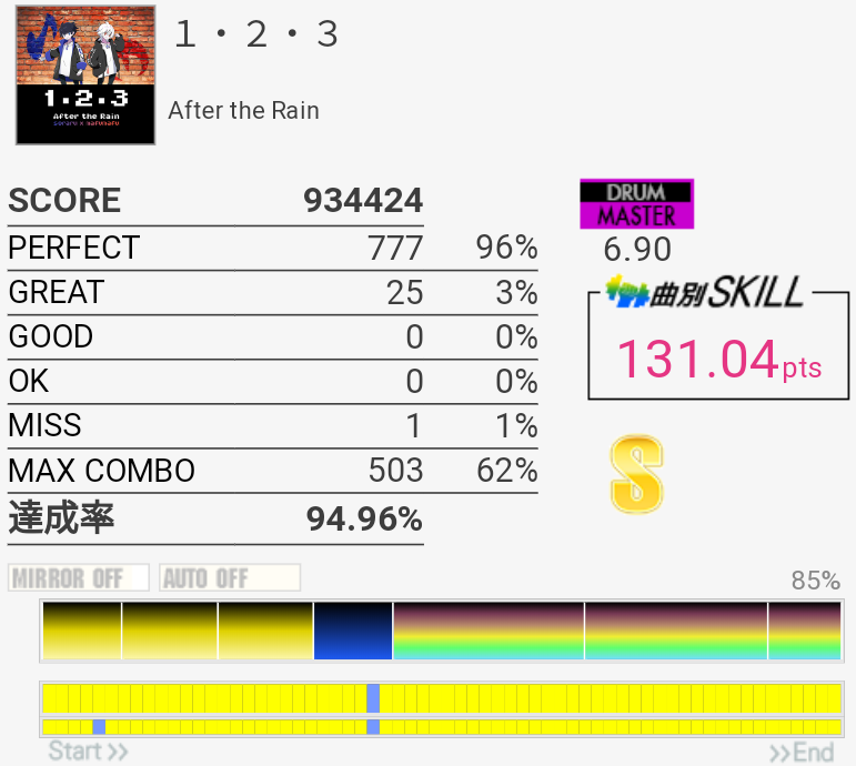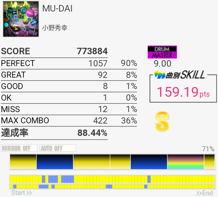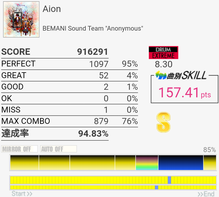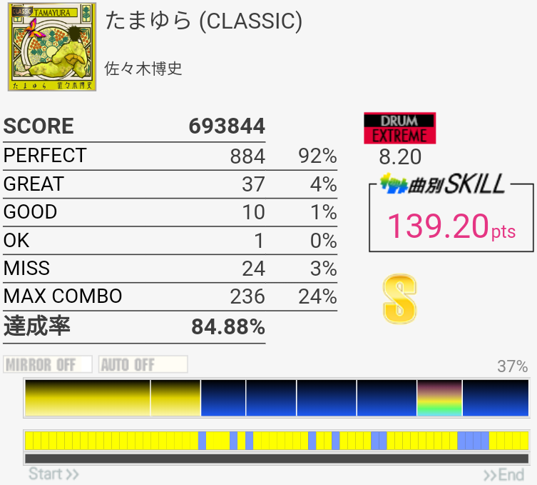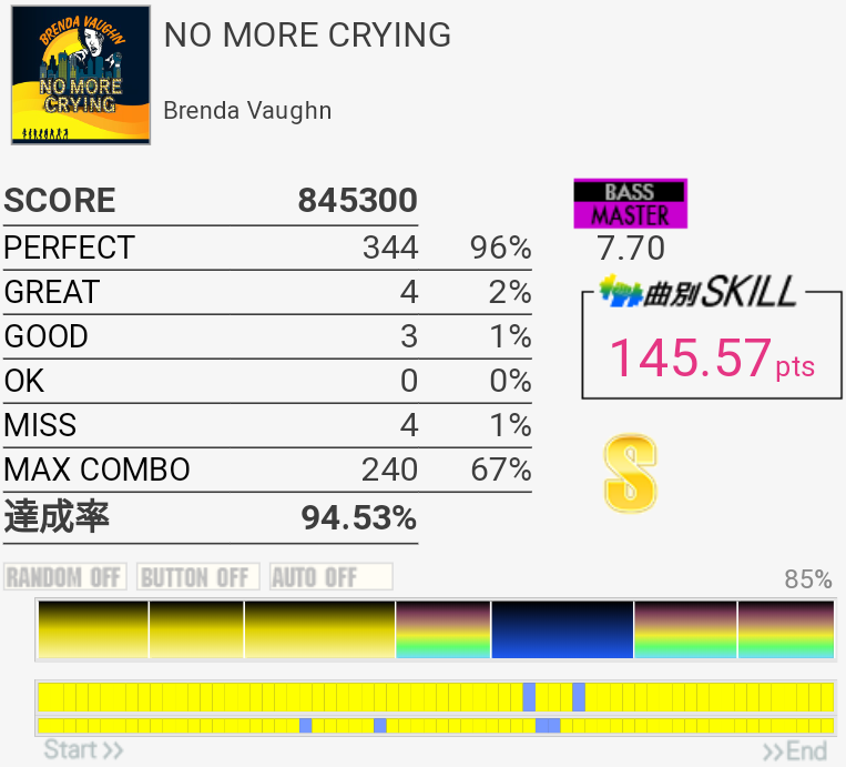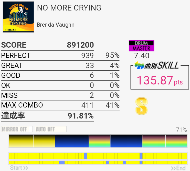 真ん中の三連符のところが繋がってちょい伸び。後半のCY×3地帯も繋がりそうだな。