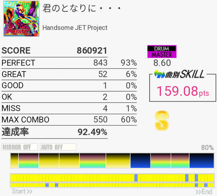 開幕ゲームボーイの起動音だったりサビ始まりでモンスターボールの音が鳴ったり懐かしい……サビはMISIAのEVERYTHINGがそのまま歌えそう。譜面はサビ前のHH+SN→HT→SN×2のゴリ押しが一回も繋がらなかったので嫌い。HH左手で取った方がいいかな……。