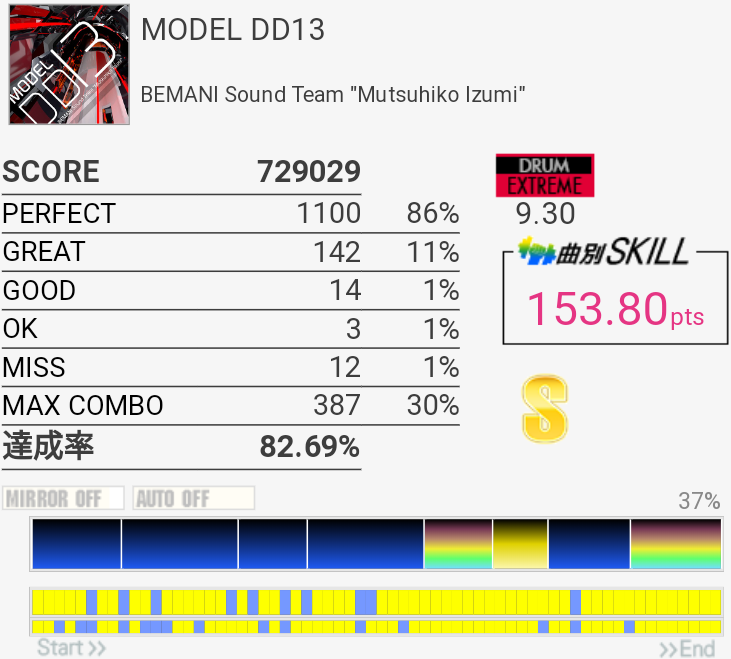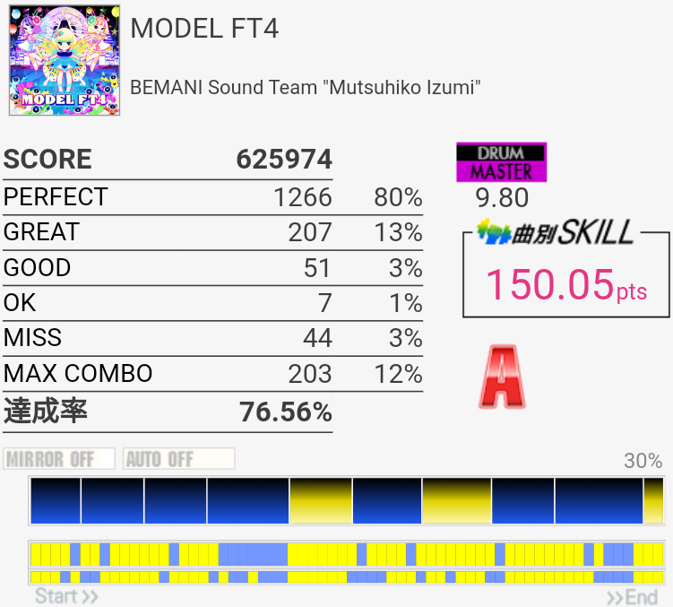 FTに振られないぶんXG譜面よりはちょっと楽かもだけれど逆に叩きづらいところも多くてどっこい。
