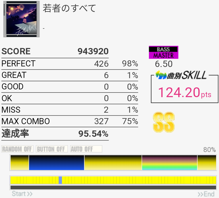 LC+SN×5が叩けん。8分LP部分はI can be!!より難しいし絶対7.40ではないよな。