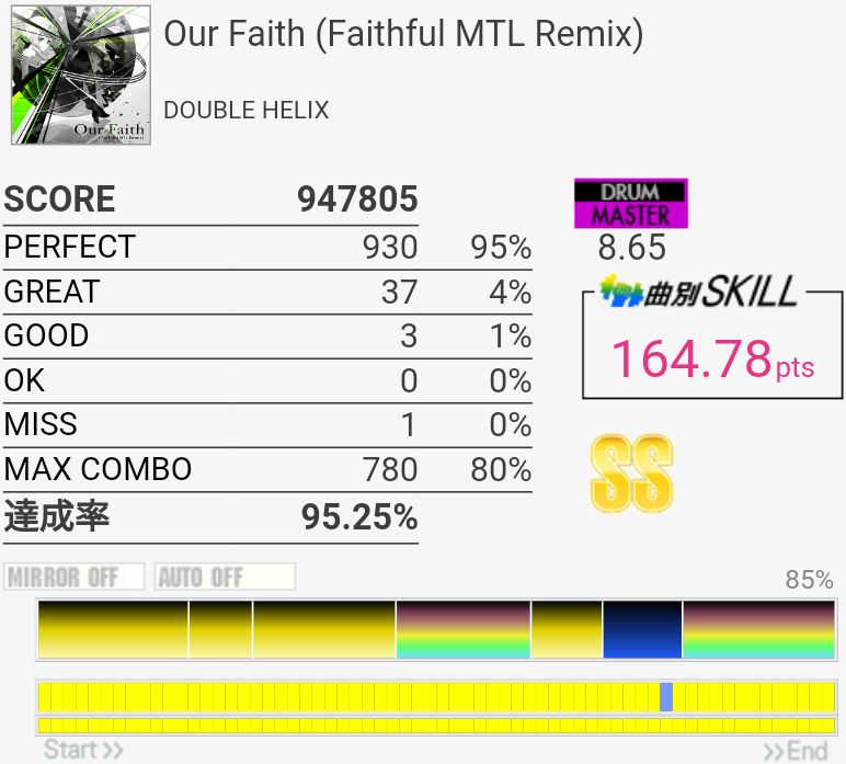 刻みの体力譜面が一番心配だったのだけれど、とりあえずギリギリ叩ききることはできた。前もけっこういっぱいいっぱいだったかな?もう覚えてないんだよな。
