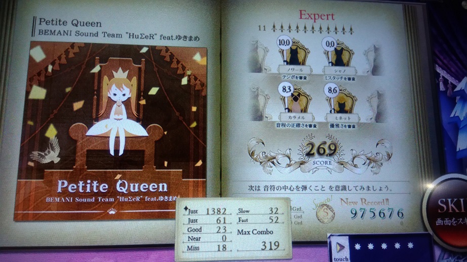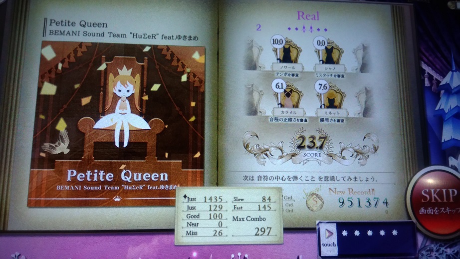 この譜面もうちょっと遅ければめちゃめちゃ練習になりそうなんだけど!これがリサイタル対象入りしてリサイタルGrade4400突破。あと100上げるのは16分をちゃんと五本指で捌けるようにしないと無理そう。