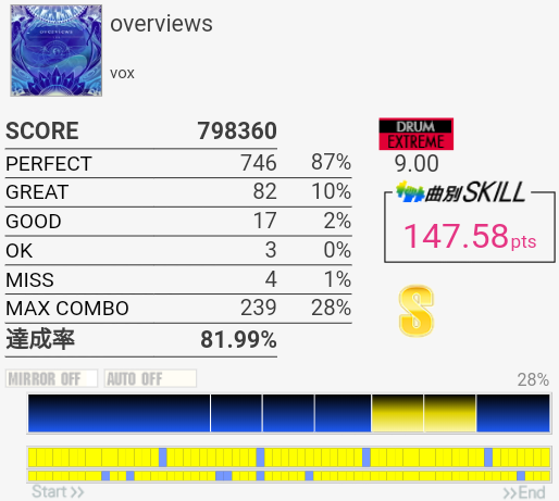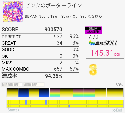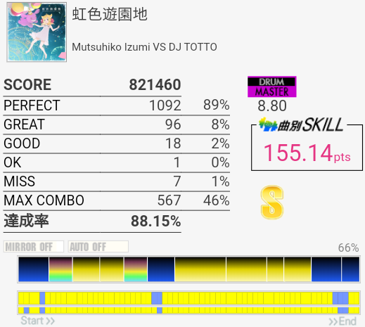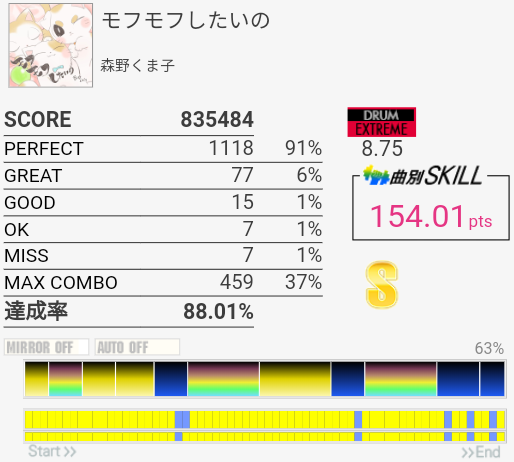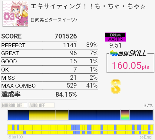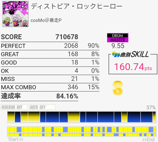 けっこうパフェ率がよかった。曲も譜面もいいのでちょくちょくやってる。