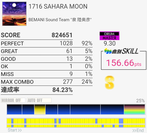 これ1フレーズ目繋がってたら対象入ってたかなー。いけるいける!何気に2フレーズ目最後の三連符繋がったの初めてかも、その前でミスっちゃってたけど。