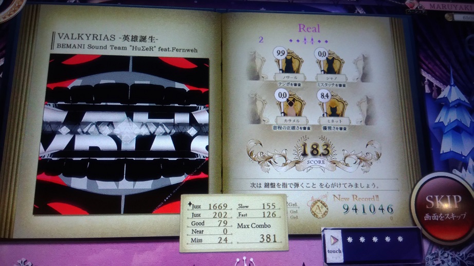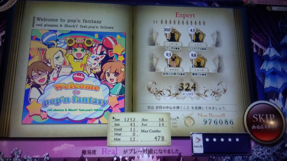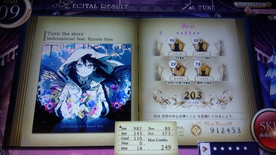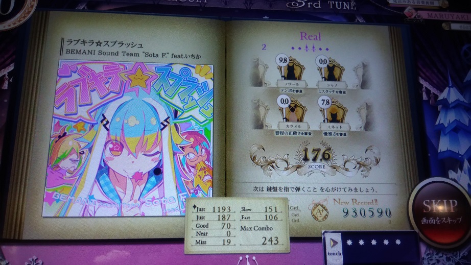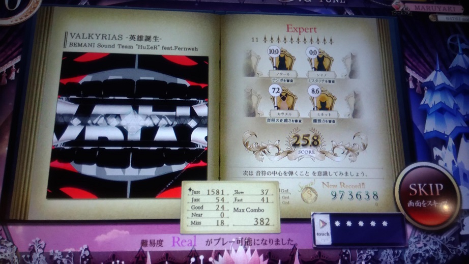 この曲知ってる!部分が終わった後の16分交互がボロボロでした。あとHardはいつも鍵盤幅と判定幅-1でやってるんだけどそれを戻し忘れたせいでトリルが2鍵幅になってちょっとやりづらかった。Realも解禁はしたけど疲れたのでやらなかったっす。