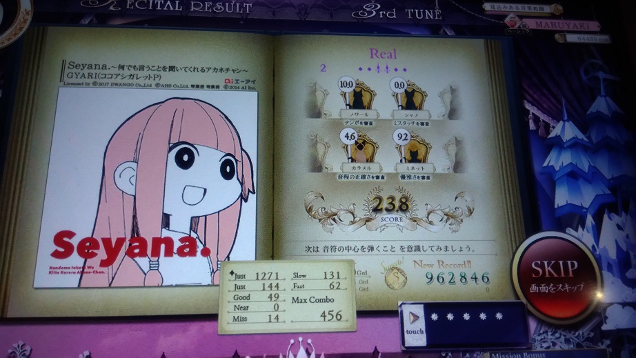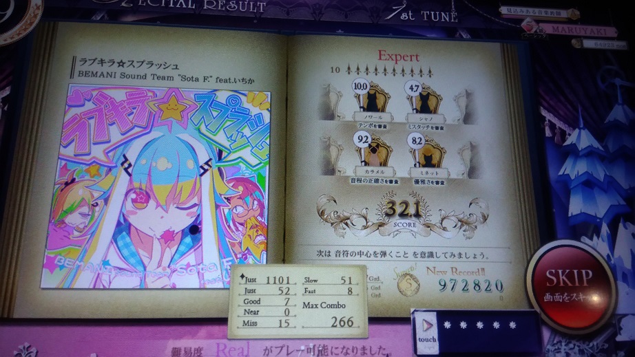 Expertの時点で割とキツい譜面だった。リサイタルばかりやっていて咄嗟のベチャ押しやスライドの反応が遅れているのはいいことなのか悪いことなのか……。