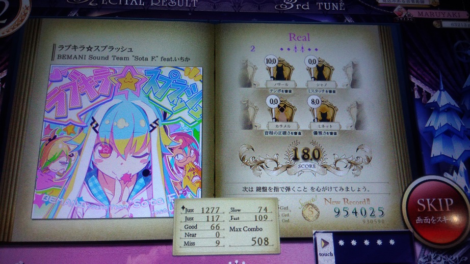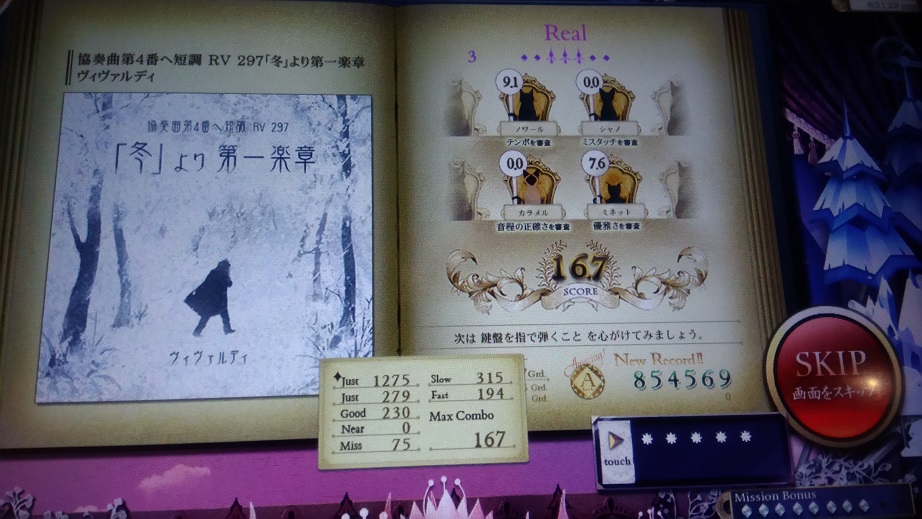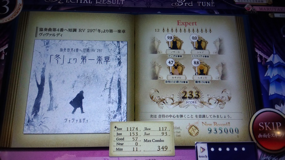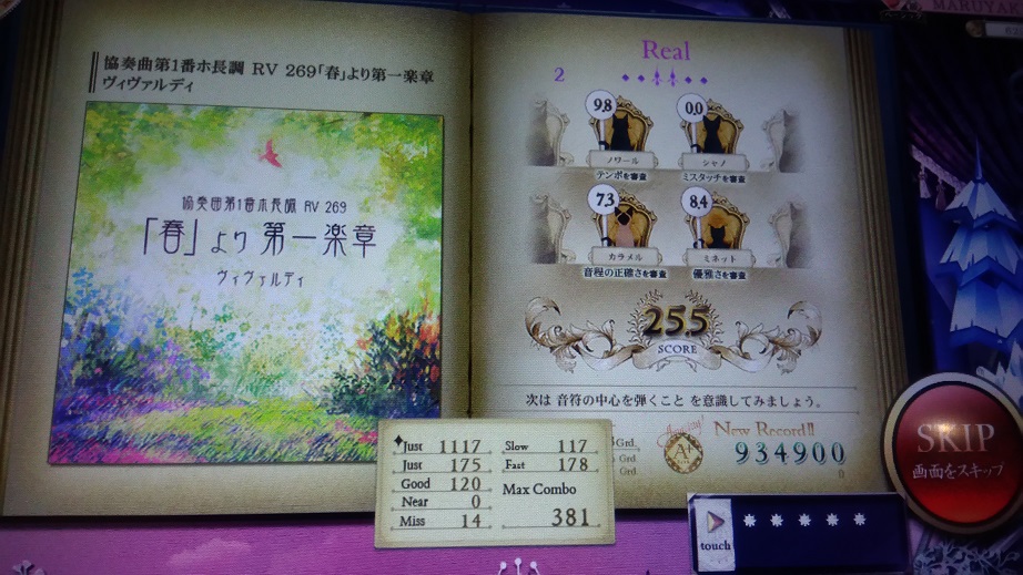 主題部分でこぼしまくったのでもう一回やったらS取れないかな?中盤の三連符部分が全然できないからダメかな。
