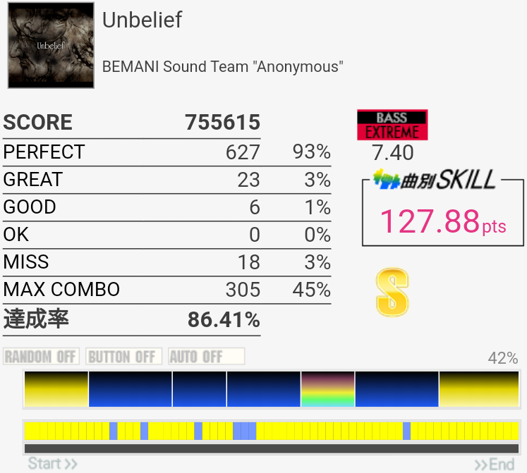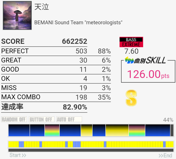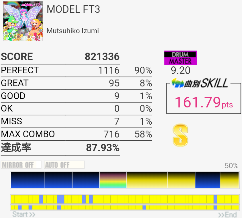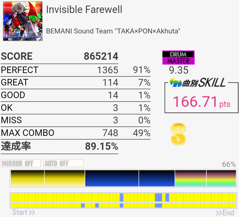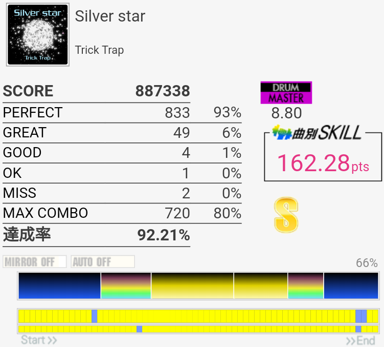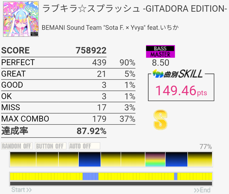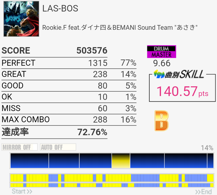 ちょっとリズム掴みづらいけどこれもあからさまな逆詐称だなあ。MASは4フレーズ目だけ8台っぽいけどあとはB→Pに飛ぶのさえちゃんと取れれば150点もらえるし。