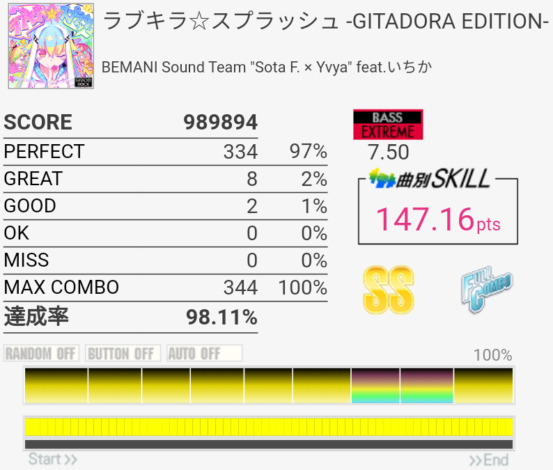 久しぶりのギタフリ。NEXTADIUMのゲージ貯めないといけないの忘れてたからそればっかやってた。今回ベース縛り抜きにしても難度値分布が厳しい気が……。