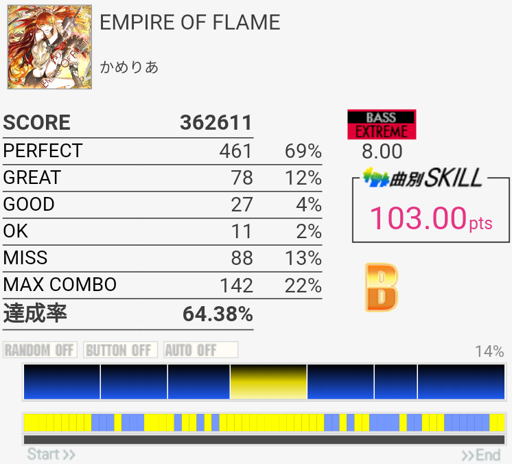 ちょい伸び。やっぱりAkhuta部分のSNが叩ききれない……。けど何回もやったらできるやろ。