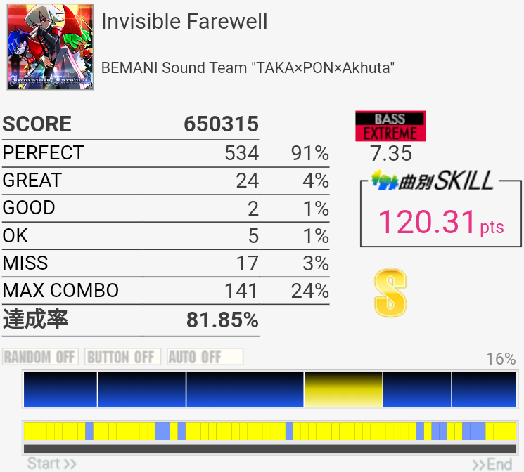 なんか勢いでコンボ繋がったけどBメロあたりにクソ速単色運指があった気がするぞ。