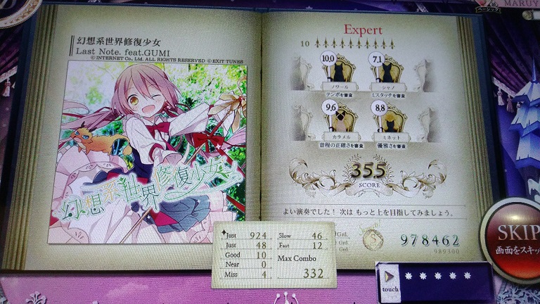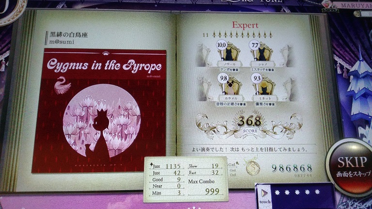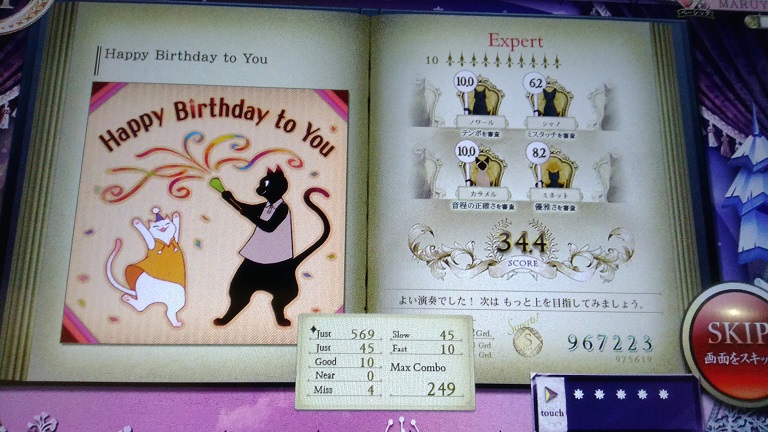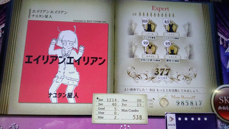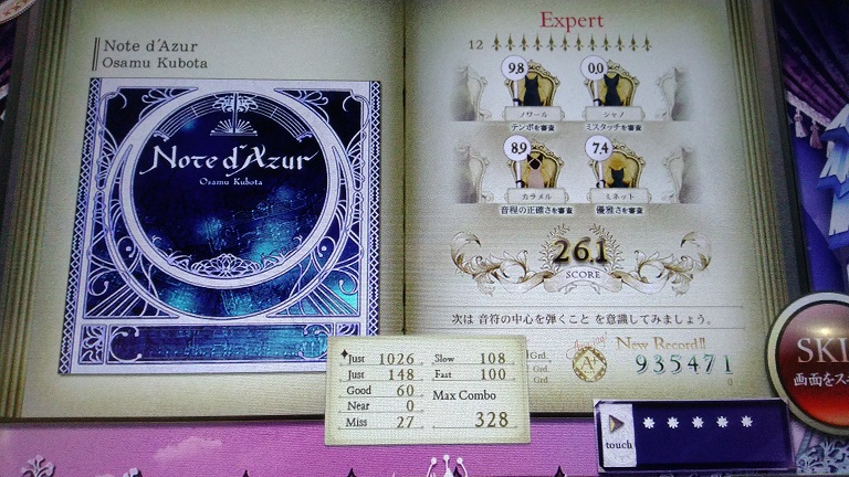 ラストのpで左端の鍵盤が力が弱すぎて沈まなかった。ちょっと力を抜くくらいだとjustになっちゃうし、判定厳しい……実際そういうもんなんだろうけど。