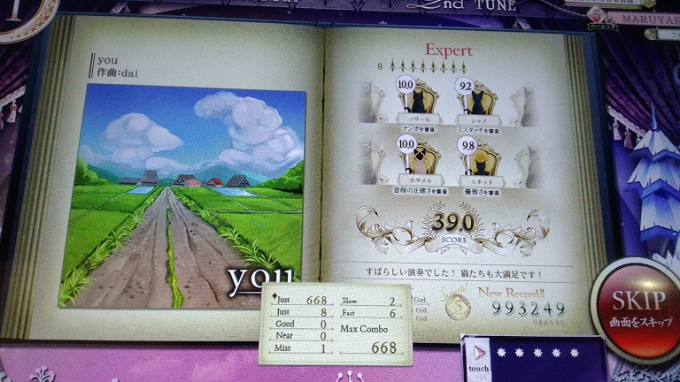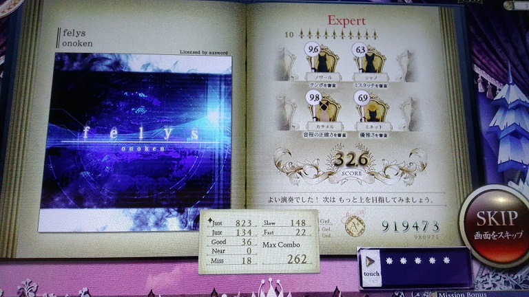たしか序盤に16分があって以降は比較的取りやすい譜面だったので稼げた。111点。