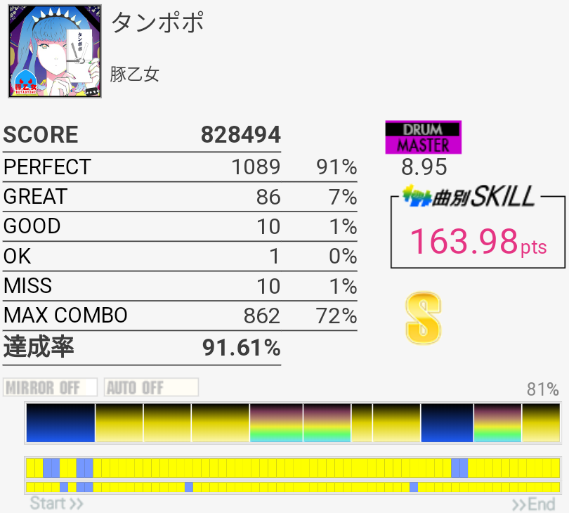 なんか8分FTでミスった。もうちょいパフェ率ないと、せめてSS届かないと。