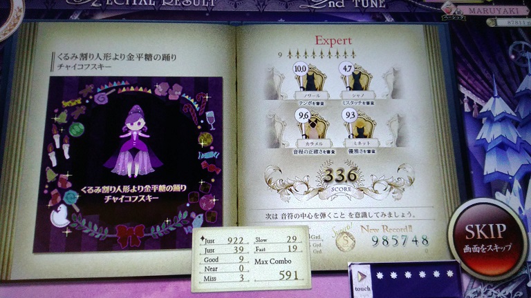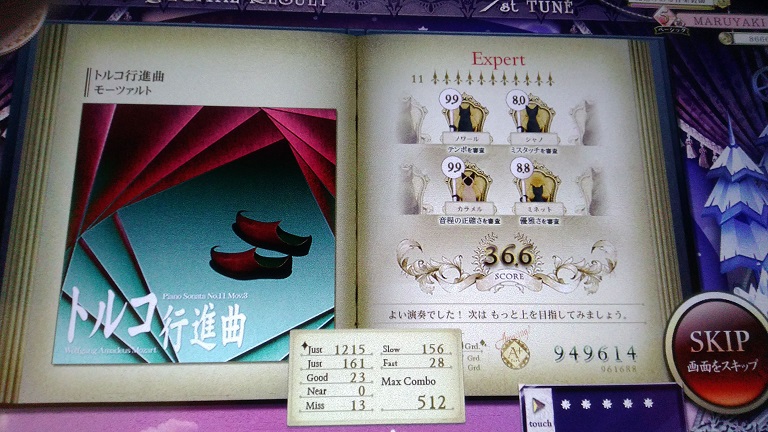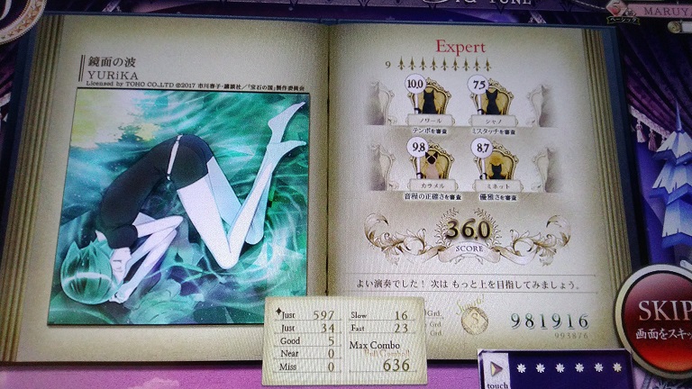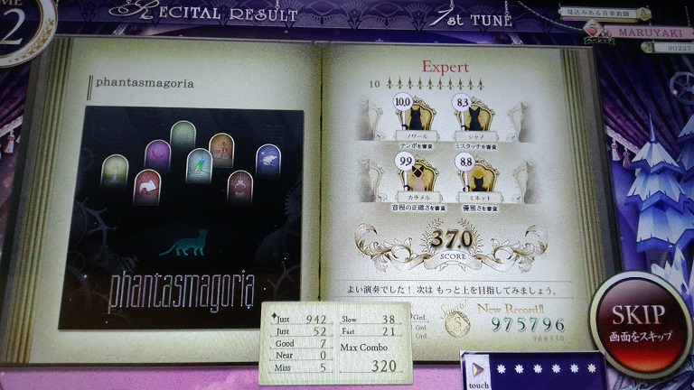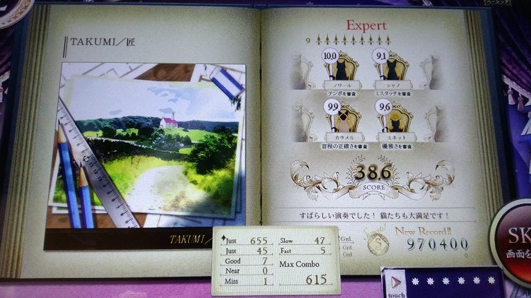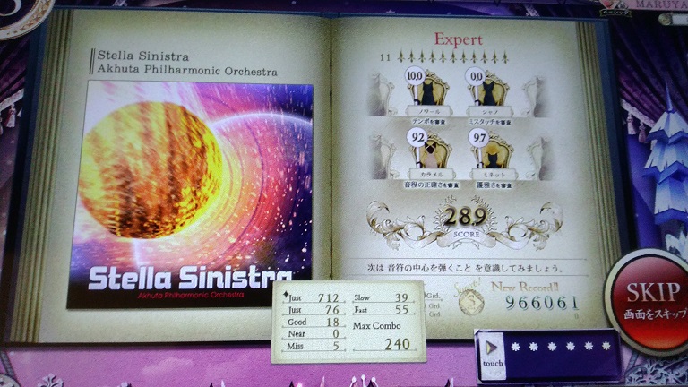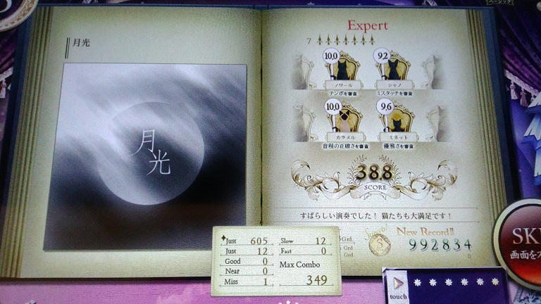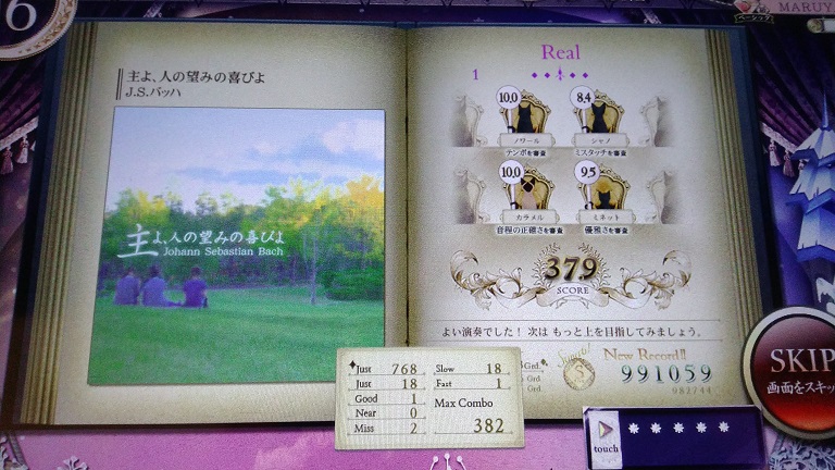 Real譜面の後でカーソル移動忘れて選んじゃったやつ。せっかくなので満点狙ってみたんだけどダメだった。強弱ほんとにシビアだなー。