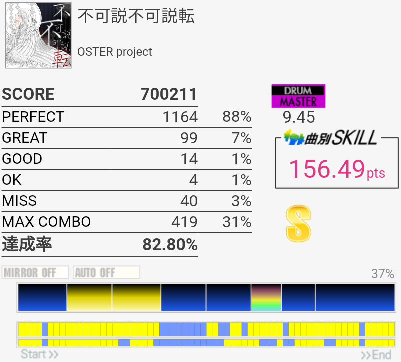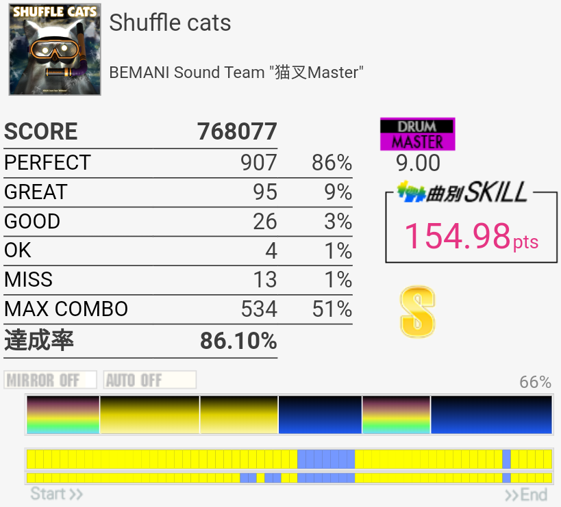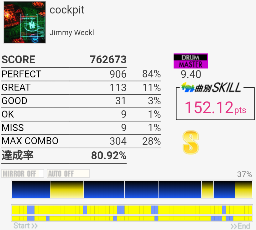 S取得。6フレーズ目が繋がったおかげ。これ虹ネクラスの片手力があったら楽勝で繋がりそうだけどな。