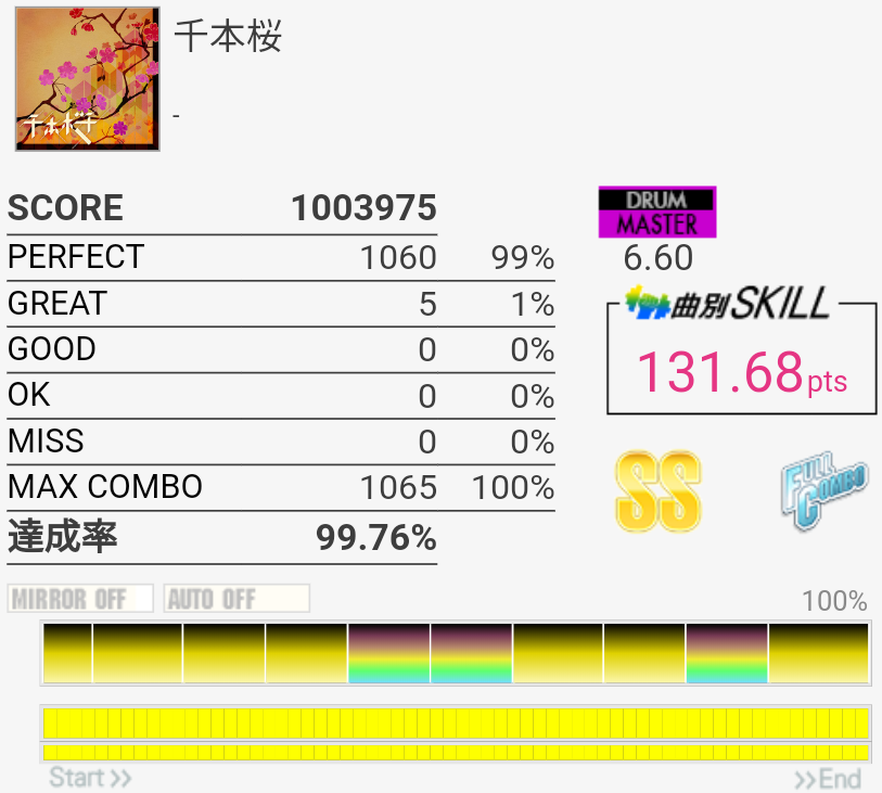 痛恨の1ミス……!!何個かわからないSNかHTがズレちゃった。7フレーズ目食らいついて繋げたのはよし。