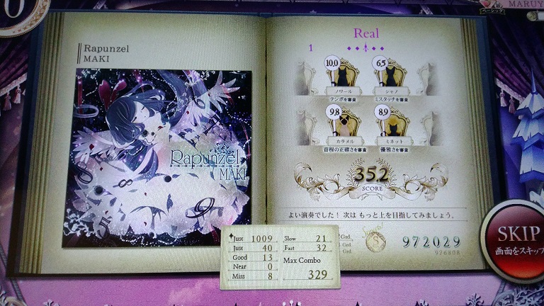 リサイタルGrade114.71。曲を全然覚えていないのでリズムの切り替わりで毎回切ってた。譜面自体はかなり稼げるね。