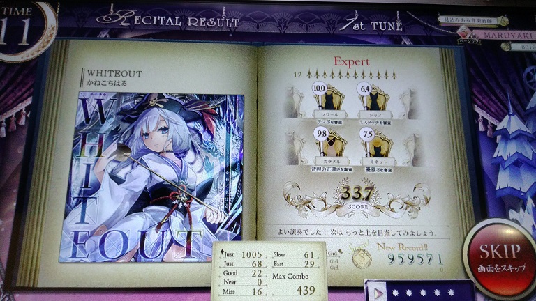 まあ欲しいところに音が入って順当に難しくなったなーと思ってたら16分五連打でふざけんな!って声出た。