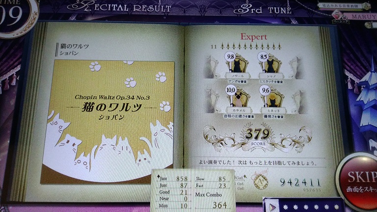 S取得。イントロムズいしサビのテレレテッテの弾き方もよくわからんし。曲を思い出すために本物のピアノの演奏動画を観てみたら何やってるかよくわからなかったし。