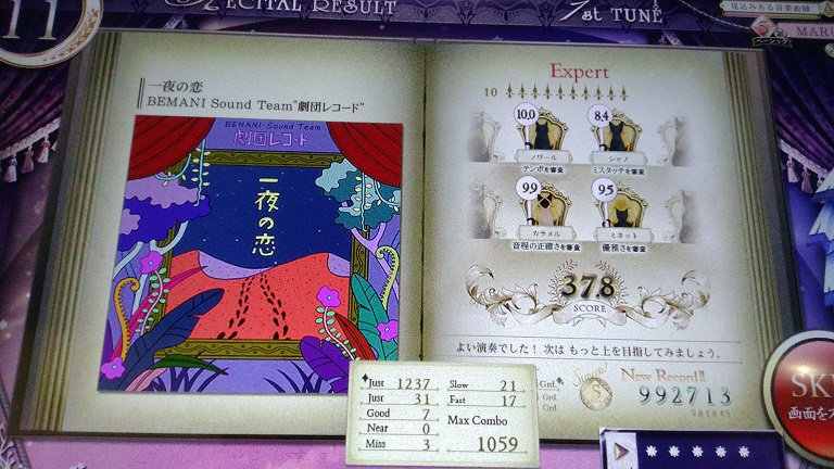 フルコン。1クレ目の1曲目だったので謎の黄Justが多発した。このレベルですらミスタッチ満点取れないんだよなあ。