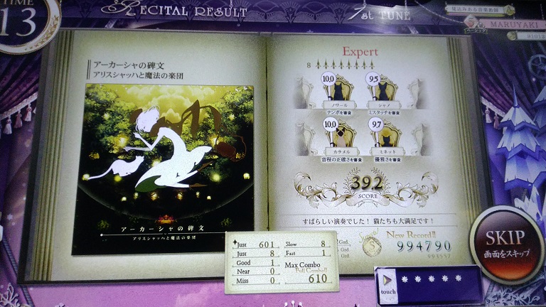 むっず!わりとゆったりした曲なのに手数多いんだね。これもExpertでノーツ間引きすぎなんじゃないかと思う。