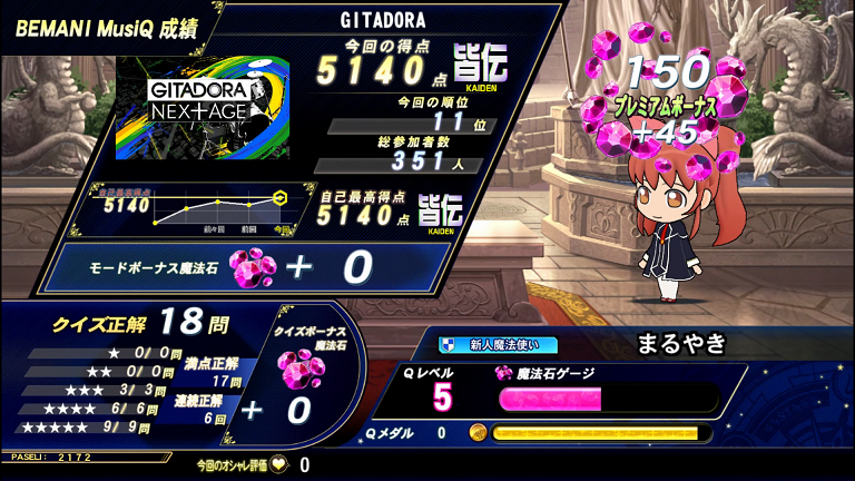 問題の難易度はやりこんでる機種なら楽勝な感じだけど、満点正解が2.5秒以内くらいなので皆伝を狙おうとするとそれなりに大変だし押しミスが頻発する(老人)。4択はコナステより筐体のタッチパネルの方がいいかなー。IIDXの方もやったけど全然わからんかった。これ8機種それぞれに称号とBGMがあって、もしQMA勢で全解禁狙ってるような人がいたらエグい難易度なんじゃないか。