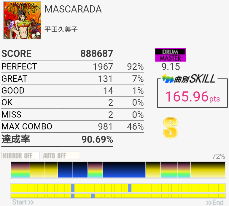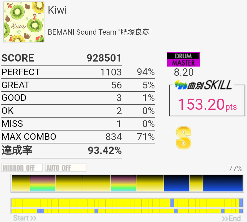 苦手なHH→SN×2のところが上手くいったと思ったらその後でスティックひっかかっちゃった。SS取れたからいいか。