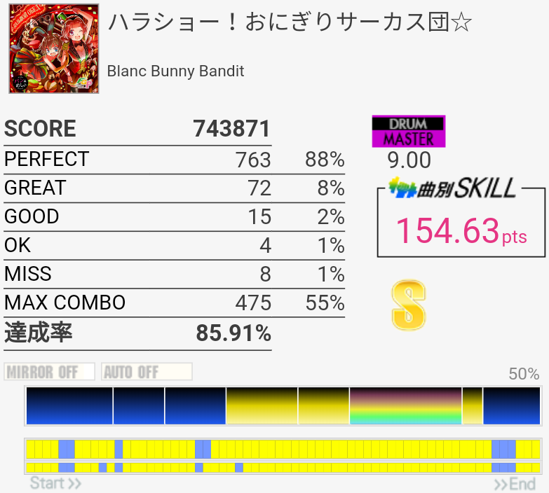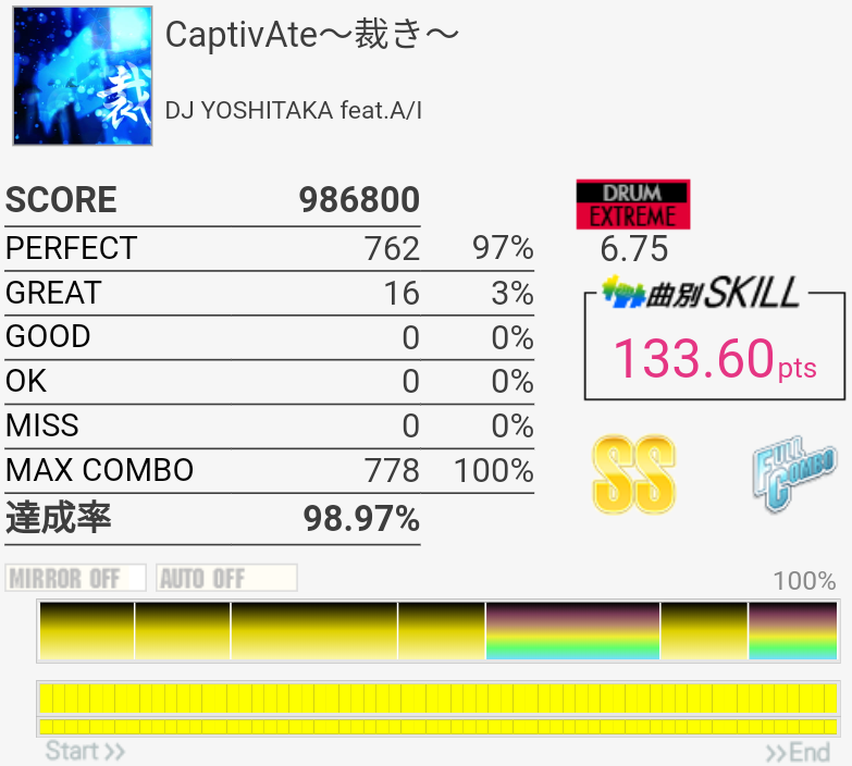 調子悪い中なぜか5フレーズ目が繋がるっていう。中盤のミスはSN無反応だったからすごいもったいないな。