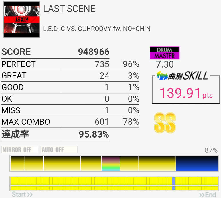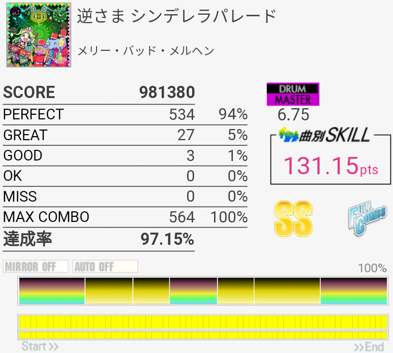 危なかったけどフルコン。HHやCYがなぜかやたらズレる。