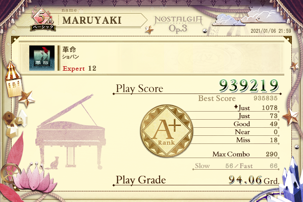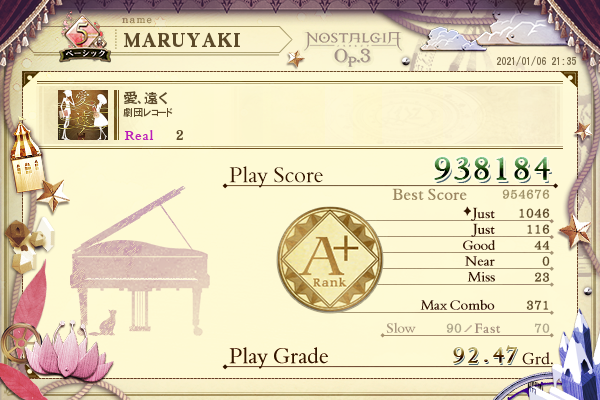 クラシックのLv.12とReal2をやってたら思った以上にリサイタルGradeを稼げたので他のジャンルで最近やってない譜面をさらう感じでプレイした。どのくらい伸びたかというと……。