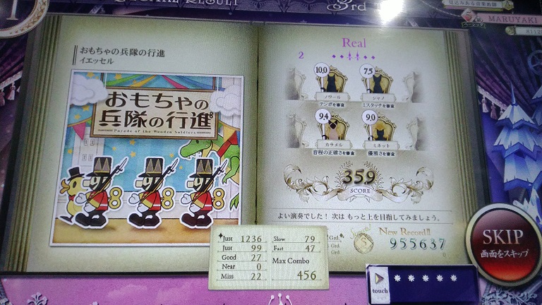 113.02点。真面目に押そうとするとめちゃめちゃ難しい。ミスタッチしまくってるけど意外と点数くれる。