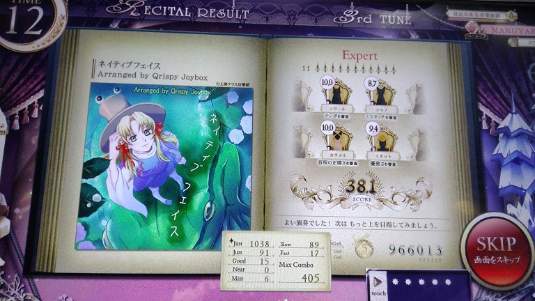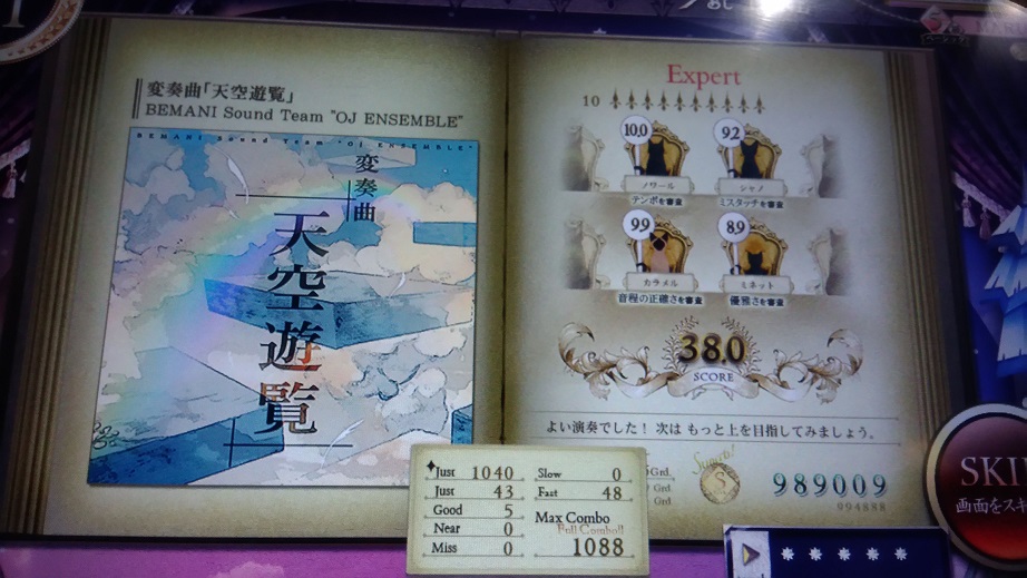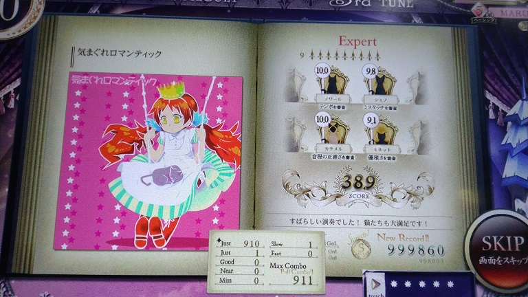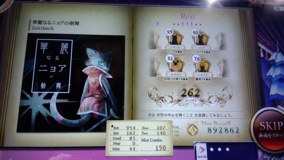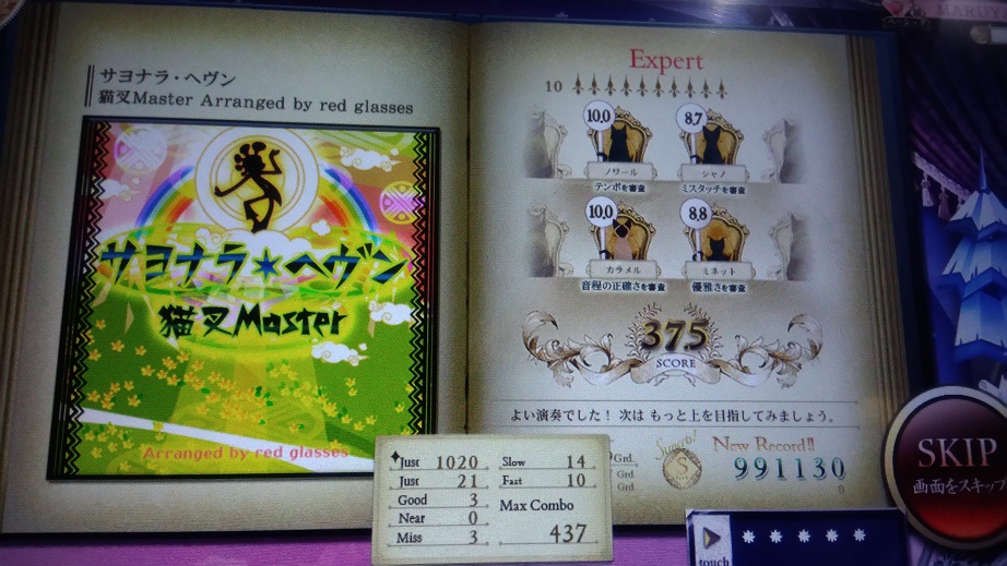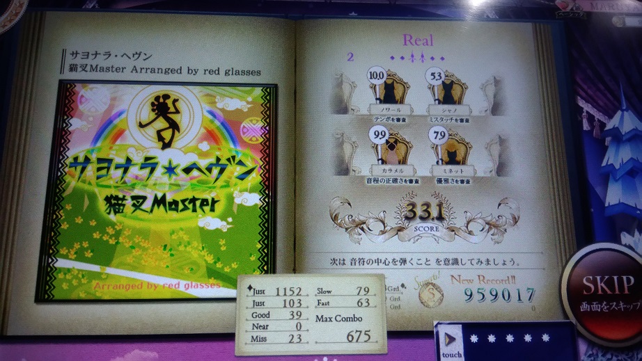 一回やってへたくそだったのでやり直した。おしい!どこで出たのかわからんけどたぶんグリッサンドでしょ。これも良曲良譜面だし消されるのは惜しい。