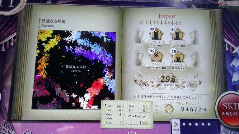 けっこうがんばったけどS取れねー!後半をちゃんと指押しできるようにしないといけないのか……。